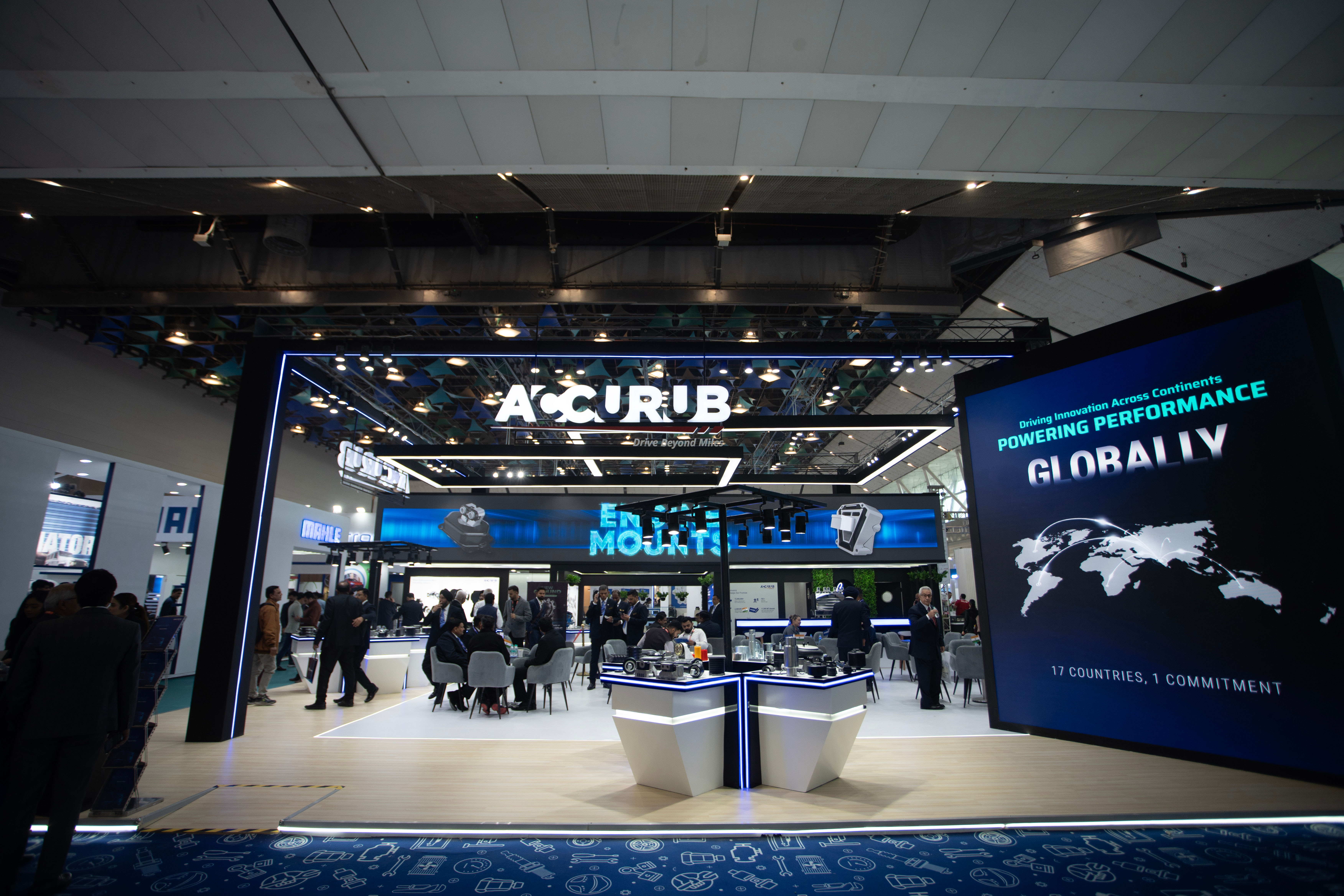 Accurub wanted to do something different for this edition of Automechanika, which is a global auto component and automotive aftermarket community. They wanted to build a space that visually aligned with their brand and was inviting enough for visitors to stick around.
